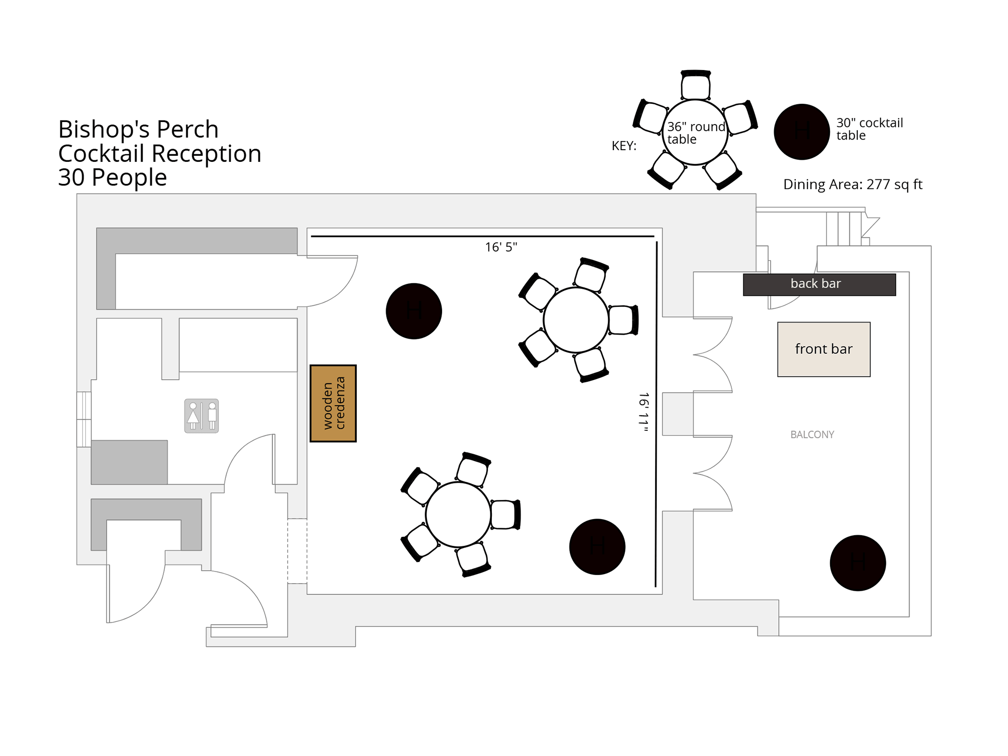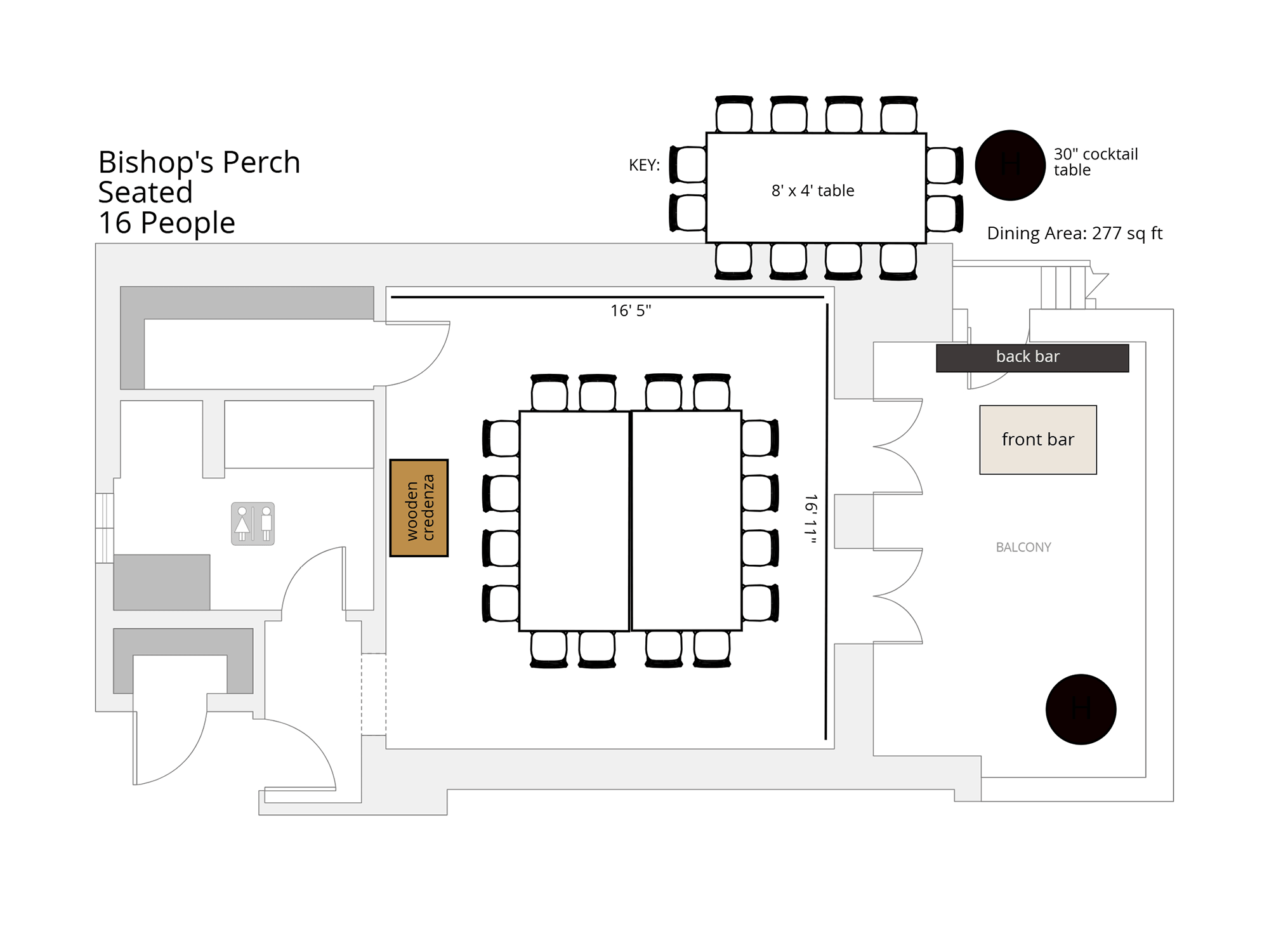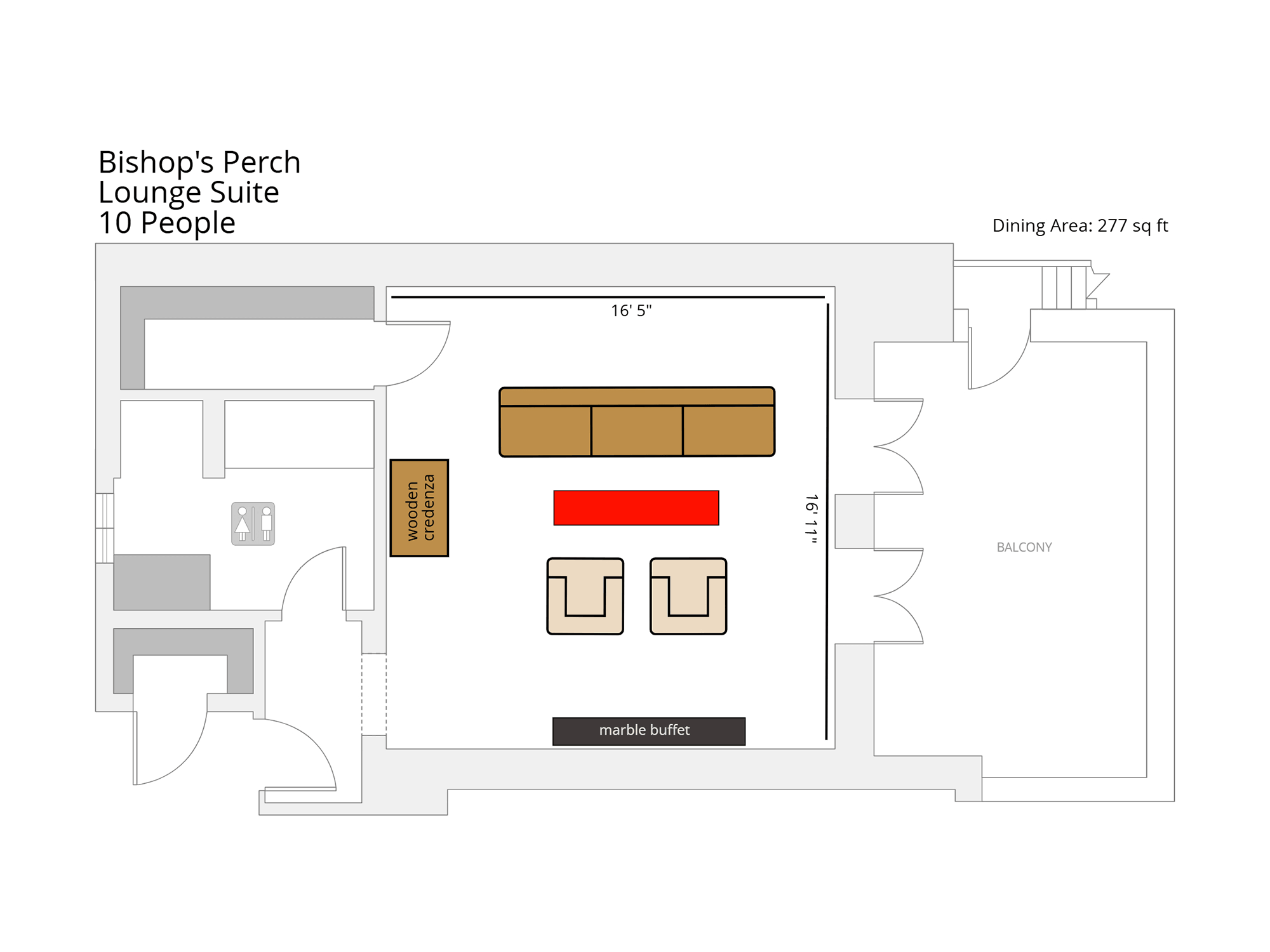With its private en suite restroom and a layout designed for comfort, Bishop’s Perch feels self-contained and exclusive – a refined hideaway for gatherings that deserve a little extra intention.