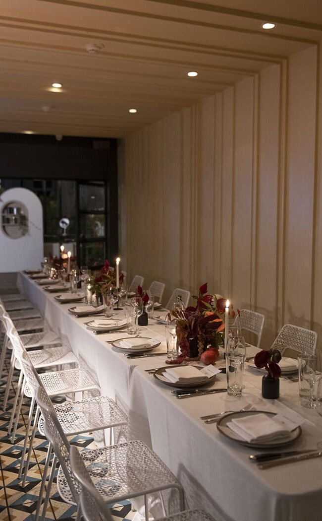 Located on the second floor of Redbird in Downtown LA, the East Room is a flexible, light-filled space designed for gatherings that feel polished and personal. It’s equally suited for corporate dinners and creative celebrations where conversations flow easily and the setting serves to impress without trying too hard.