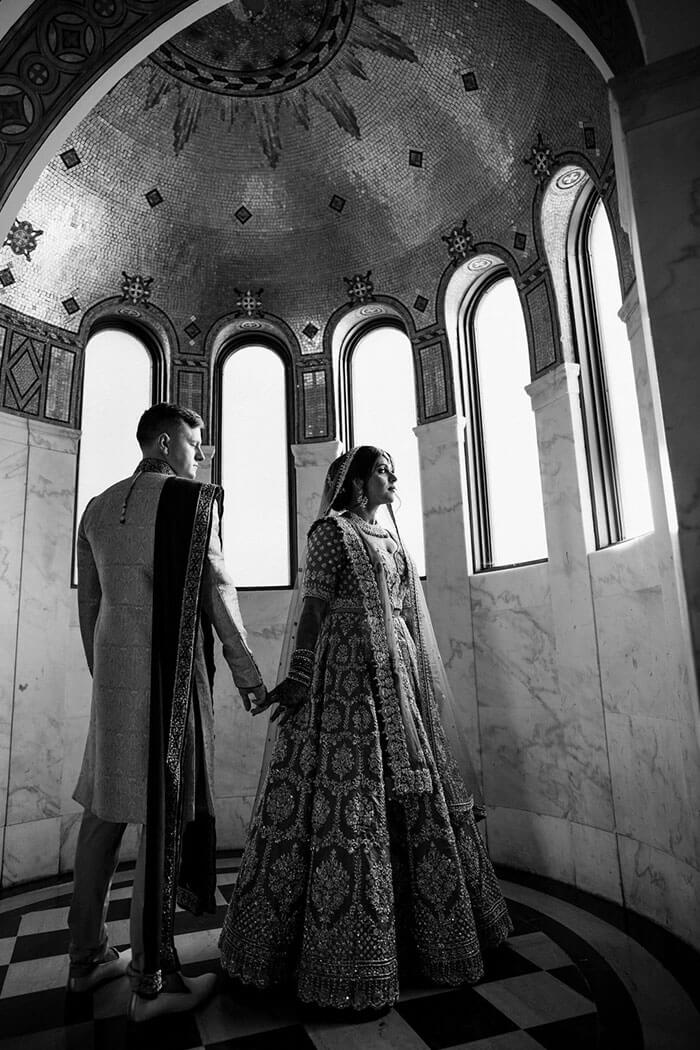Vaulted ceilings, dramatic scale, and architectural detail set the tone inside while the adjacent lush courtyard offers an open-air counterpoint for cocktail hours, transitions, or quiet moments between celebrations. Together, the spaces allow events to unfold in layers – ceremony to reception, presentation to dinner, performance to after-party – without losing momentum.