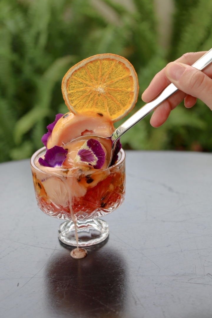 SUNDAE guava sorbet, pineapple mango salsa, passionfruit 12